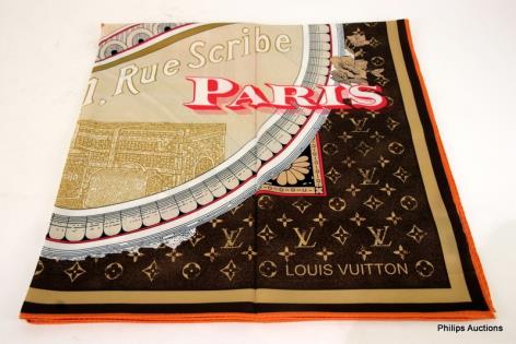 A LOUIS VUITTON SILK SCARF (BEIGE)