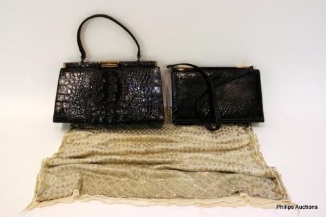 TWO EXOTIC LEATHER HANDBAGS & A SHAWL