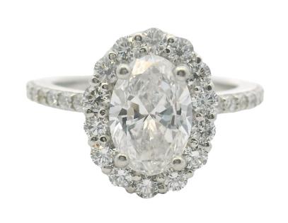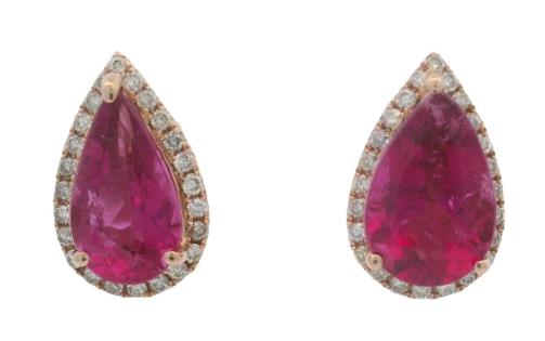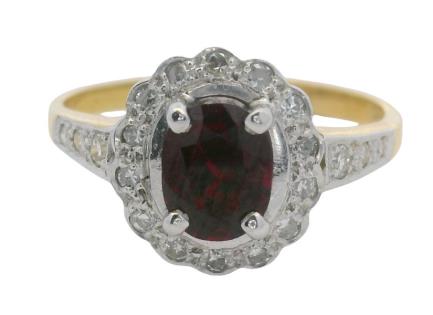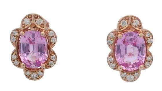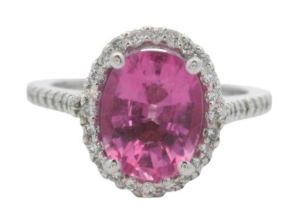 AN 18K W.G OVAL CUT PINK TOURMALINE OF 1.81CT & DIAMOND(.30CT) CLUSTER RING, SIZE: L, T.W.: 3.8GRAMS