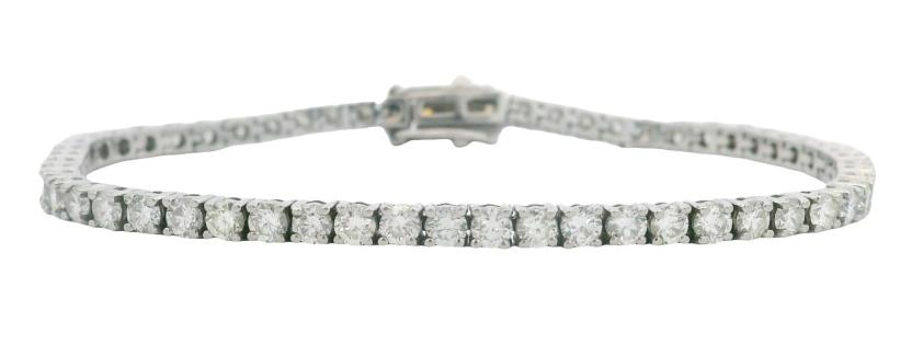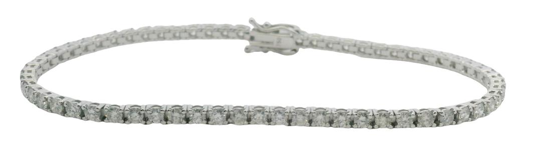 AN 18K W.G CLASSIC DIAMOND TENNIS BRACELET TOTALLING 3.50CT, L:18CM, WEIGHING 7.6GRAMS