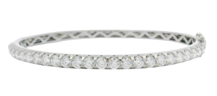AN ATTRACTIVE OVAL 9K WHITE GOLD DIAMOND SET BANGLE TOTALLING 2.50CTS, WEIGHING 14GRAMS