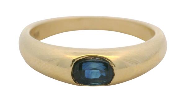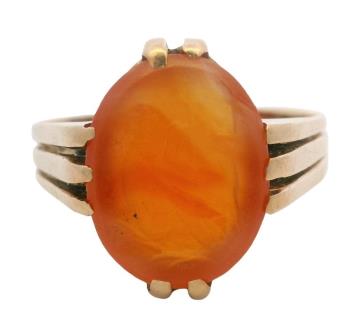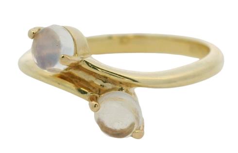 AN 18K Y.G ROUND CABOCHON CUT MOONSTONE BI PASS RING, SIZE: N1/2, T.W.: 3.5GRAMS
