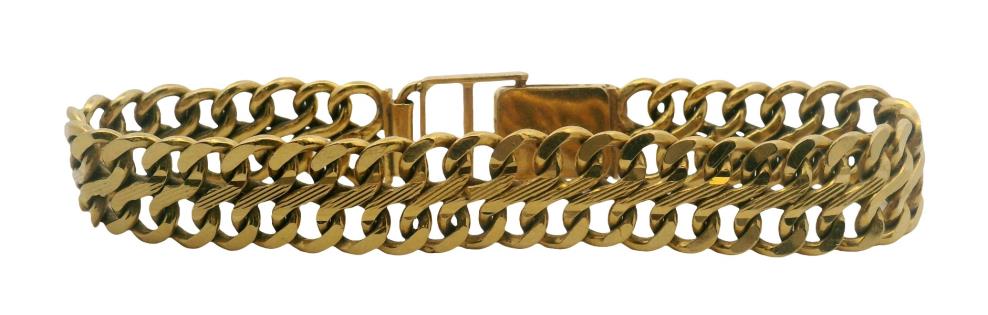 A MODERN GATE LINK STYLE 9K YELLOW GOLD BRACELET, LENGTH: 20CM, WEIGHING 15GRAMS