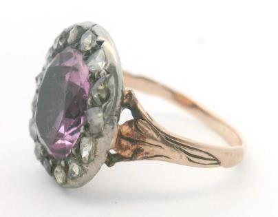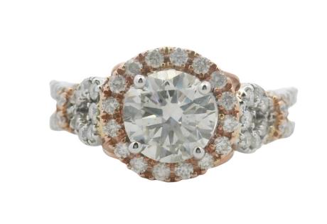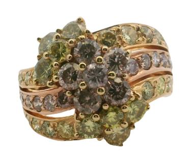 A 14CT ROSE & WHITE GOLD CLUSTER RING FEATURING PINK & WHITE DIAMONDS A.T.D.W 11.25CTS, SIZE M, 3.2G