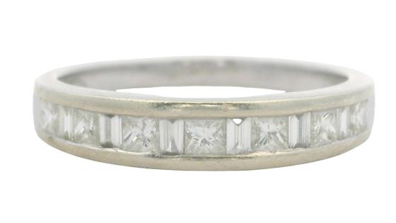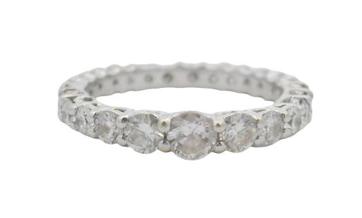 AN 18K WHITE GOLD DIAMOND ETERNITY BAND TOTALLING 1.40CT, WEIGHING 3.0GRAMS, SIZE: L