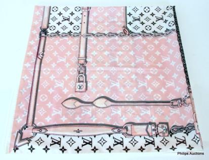 A LOUIS VUITTON SILK SCARF (PALE PINK)