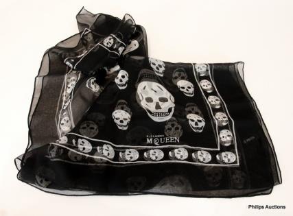 AN ALEXANDER MCQUEEN SKULL PRINT SILK CHIFFON SCARF