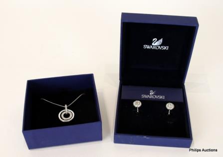 A SWARVOSKI PENDANT NECKLACE and SWAROVSKI CLIP-ON EARRINGS