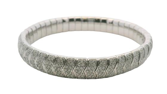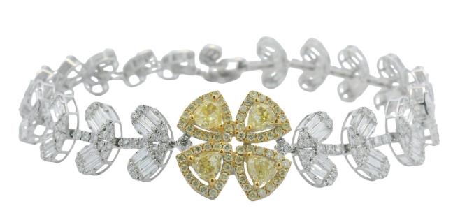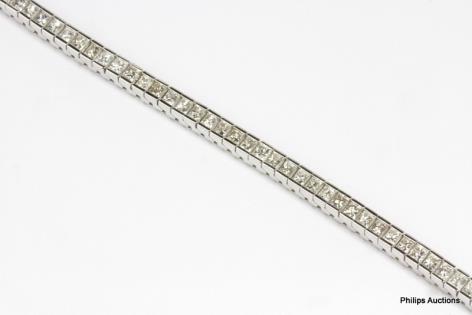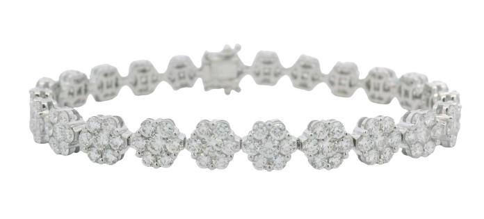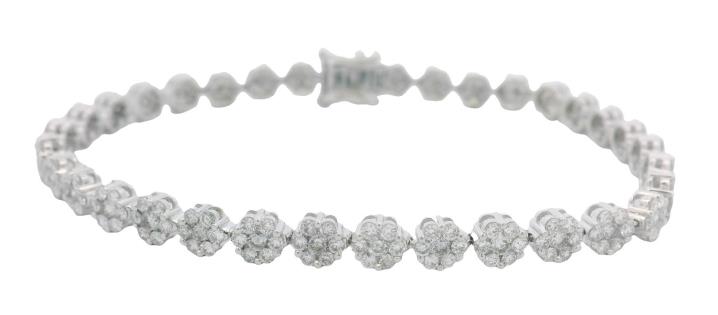 AN 18CT WHITE GOLD ROUND DAISY FLORAL DIAMOND CLUSTER LINE BRACELET TOTALLING 7.78CT, 18.6GR