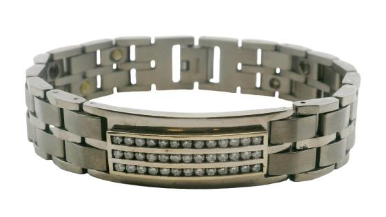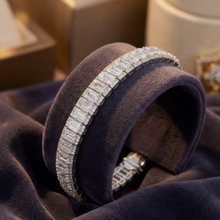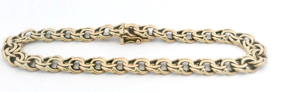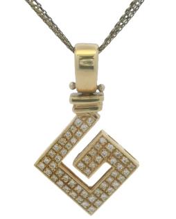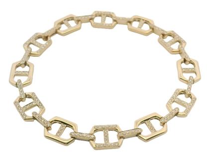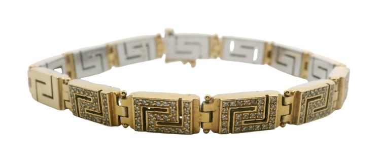 AN 18CT YELLOW AND WHITE GOLD DIAMOND DETAILED GRECIAN KEY PATTERN BRACELET, 23.2GR