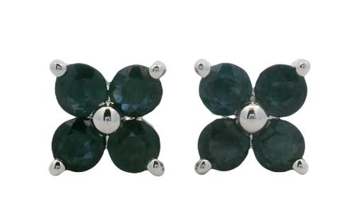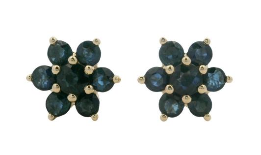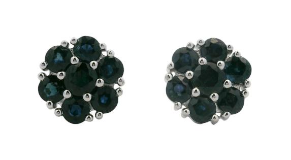 A PAIR OF 9CT WHITE GOLD SMALL ROUND CUT SAPPHIRE FLORAL CLUSTER STUDS, 1.2GR