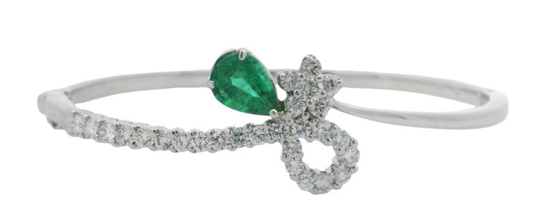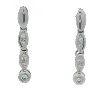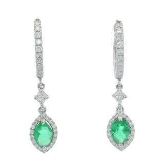 A PAIR OF 18CT WHITE GOLD MARQUISE CUT EMERALD & DIAMOND SHORT DROP EARRINGS, 3GR