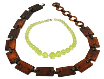 A STRAND OF ORIGINAL URANIUM BEADS AND BROWN BAKELITE BELT