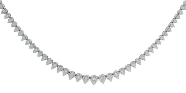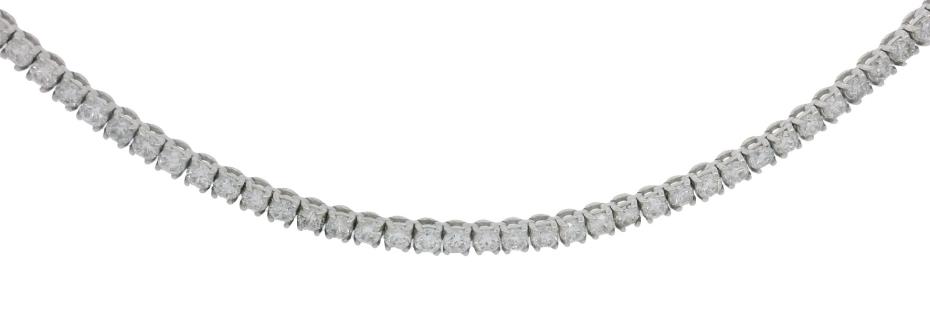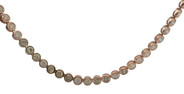 A 14CT ROSE GOLD GRADUATED ROUND CUT 16.54CTS DIAMOND BEZEL SET TENNIS NECKLACE, 28.2GR
