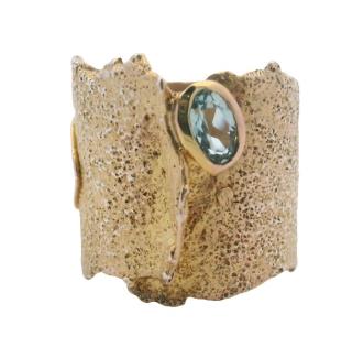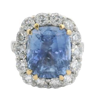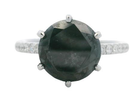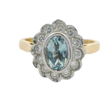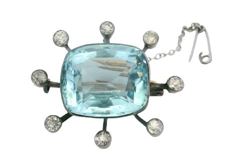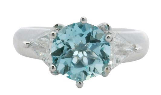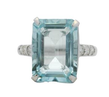 A 16CT ROUND CUT AQUAMARINE & FLANKED TRILLIANT CUT DIAMOND RING SIZE M, 6.9GR
