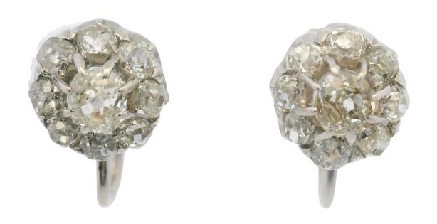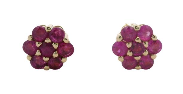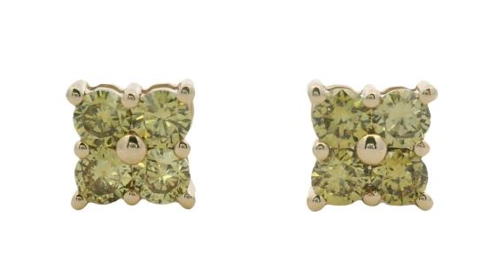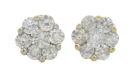 A PAIR OF 14CT YELLOW GOLD ROUND CUT DIAMOND CLUSTER STUD EARRINGS, 2.2GR