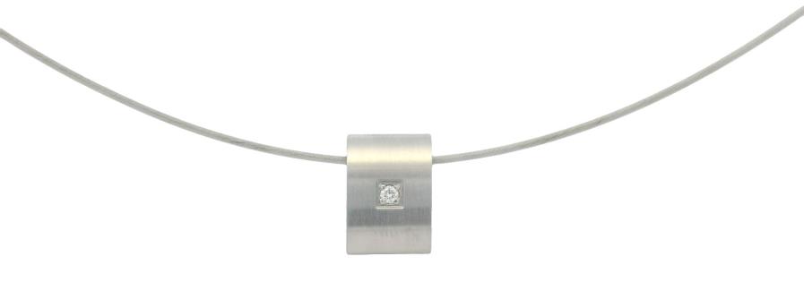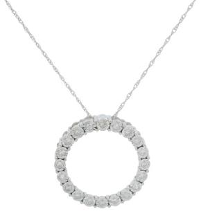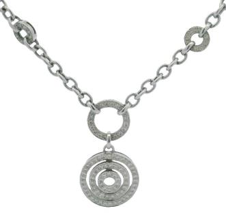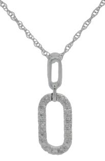 A 14CT WHITE GOLD DIAMOND SET OVAL PAPERCLIP DROP PENDANT ON CHAIN, 1GR