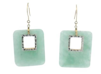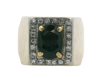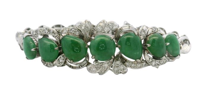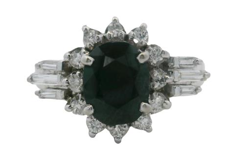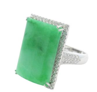 A 16CT WHITE GOLD RECTANGULAR JADE & DIAMOND CLUSTER DRESS RING SIZE M1/2, 13.9GR