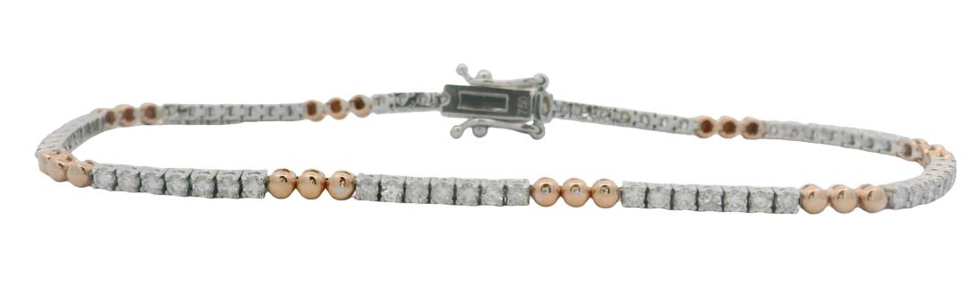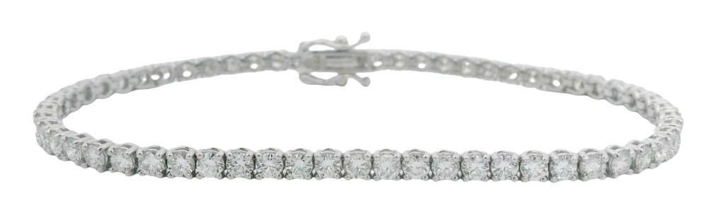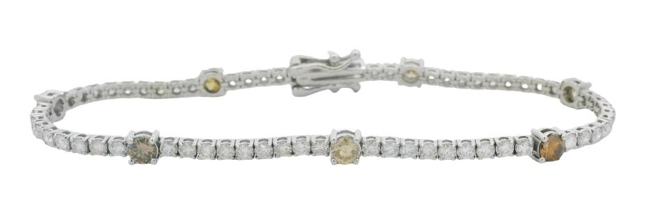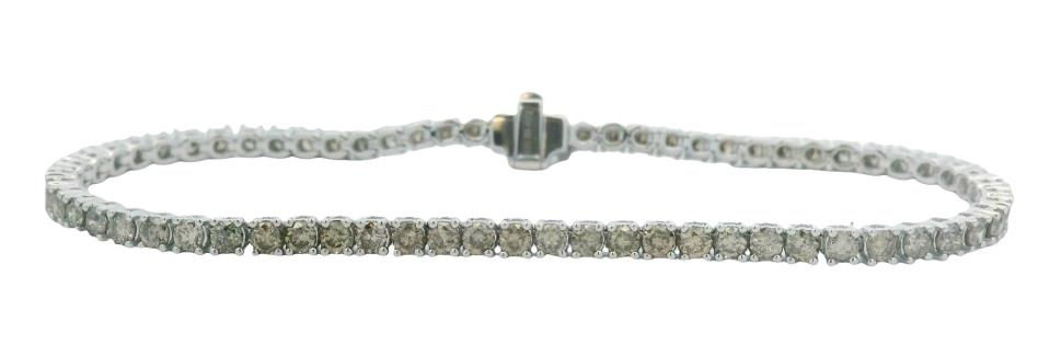A 14CT WHITE GOLD ROUND CUT COGNAC DIAMOND & DIAMOND LINE BRACELET, 6.7GR