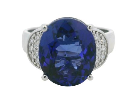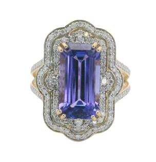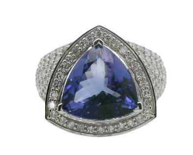 A 14CT WHITE GOLD TRILLIANT MIXED CUT TANZANITE & DIAMOND DETAILED COCKTAIL RING SIZE N1/2, 9.1GR