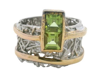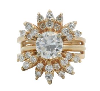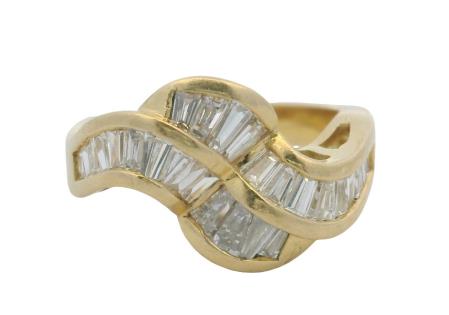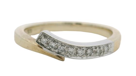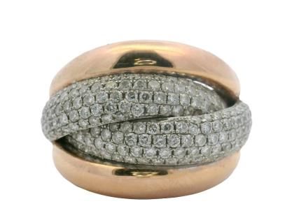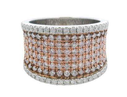 AN 18CT YELLOW GOLD WITH RHODIUM PLATING WIDE FOUR ROW DIAMOND PANEL RING SIZE N, 9GR TOTAL