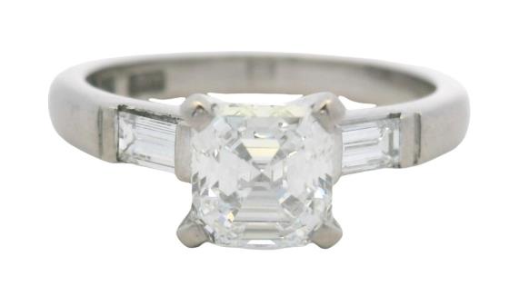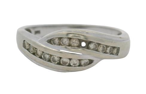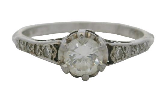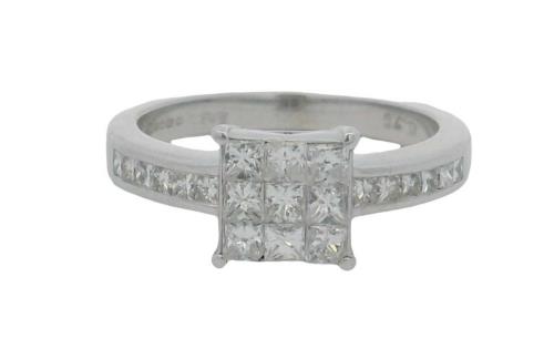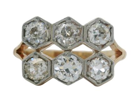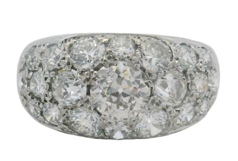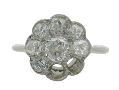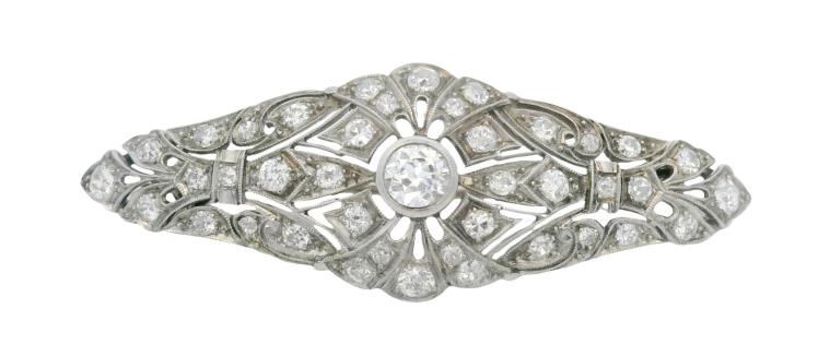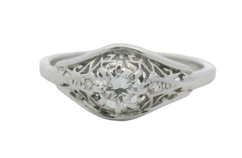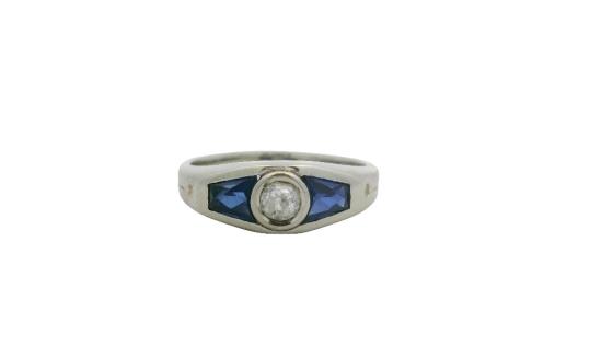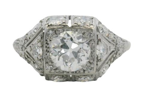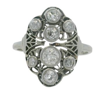 AN ART DECO PLATINUM DIAMOND SET PLAQUE RING SIZE O, 3GR