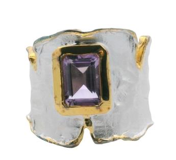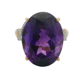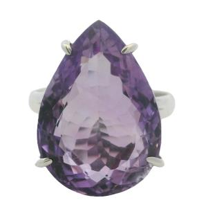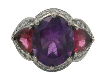 AN 18CT WHITE GOLD LARGE 9CTS AMETHYST & DIAMOND DETAILED HORSESHOE DRESS RING, SIZE U, T.W. 21.8GR
