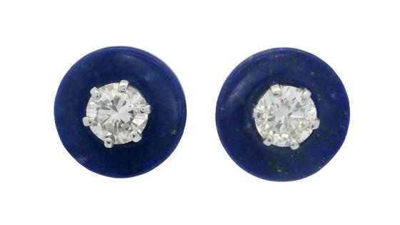 AN 18CT WHITE GOLD PAIR OF DIAMOND STUDS WITH DETACHABLE DIAMOND SET PANEL A.T.D.W.: 0.364CTS, 3.1GR