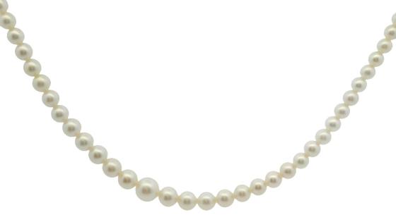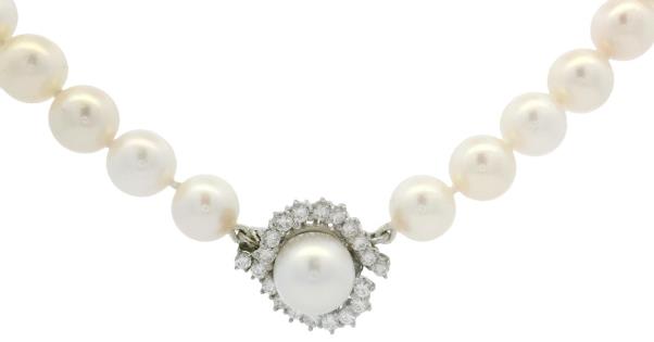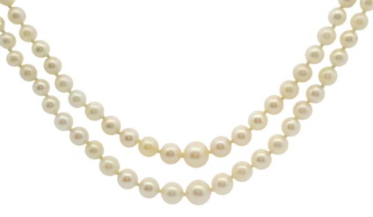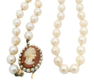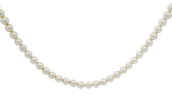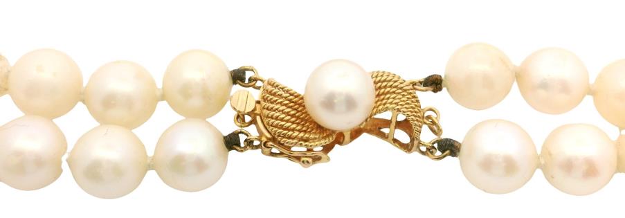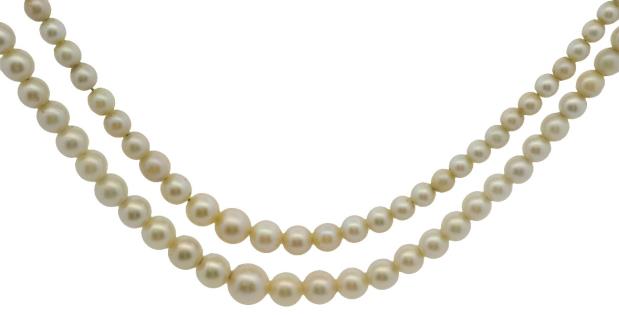 A STRAND OF WARM CREAM PEARLS ON BOW CLASP