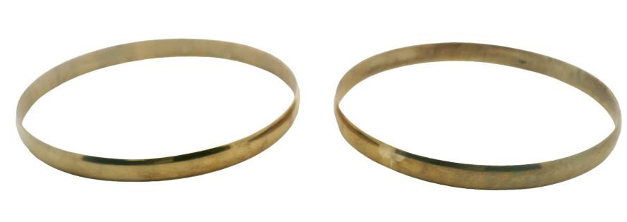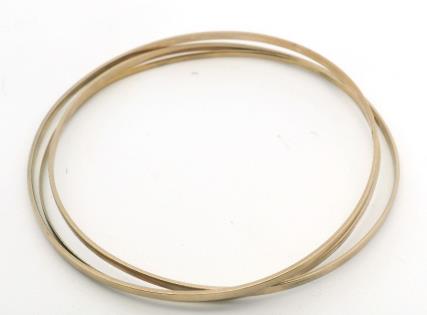 A SET OF THREE ROUND PLAIN POLISHED 9CT YELLOW GOLD BANGLES, 9.6GRAMS TOTAL WEIGHT