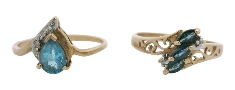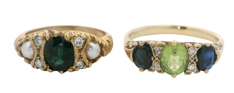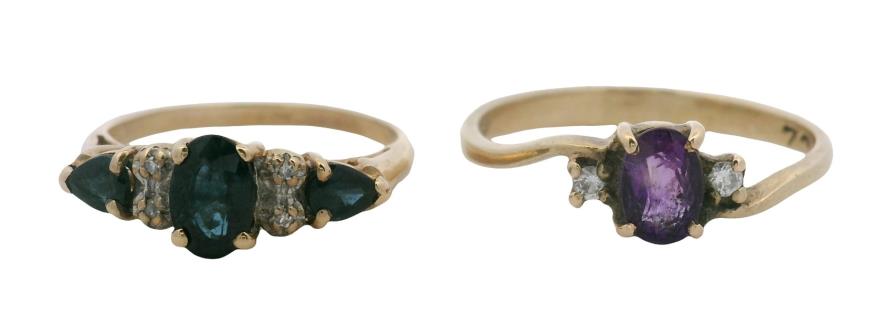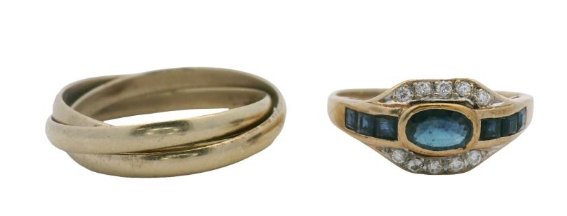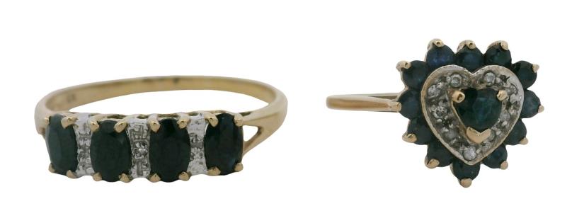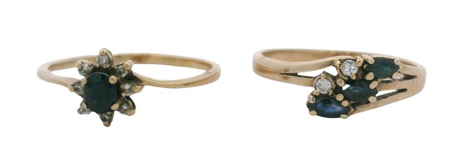 TWO PETITE SAPPHIRE AND DIAMOND SET DRESS RINGS BOTH 9CT GOLD, SIZES L1/2 & T1/2, 3.7GRAMS TOTAL