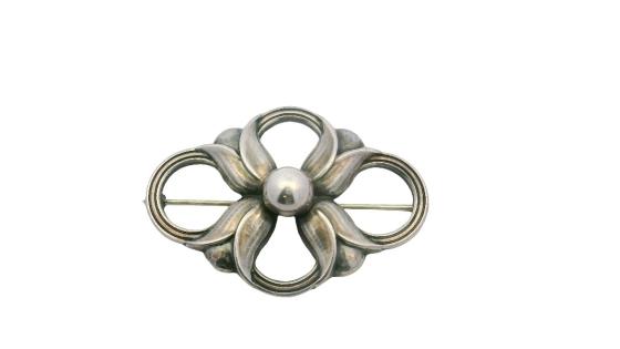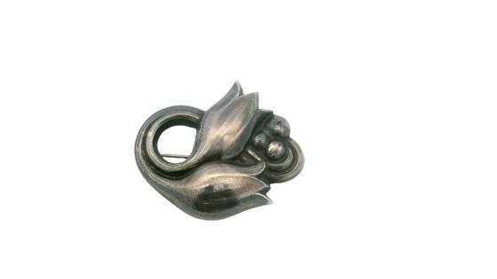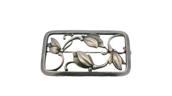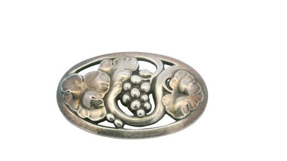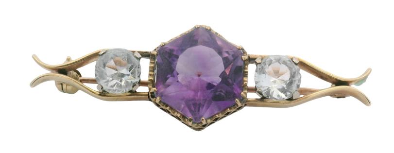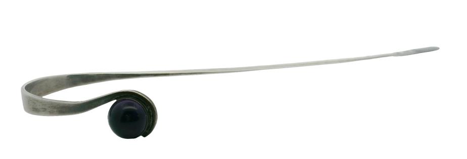 AN AMETHYST CABOCHON SET SILVER VINTAGE HAIR SLIDE