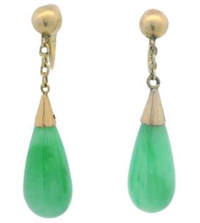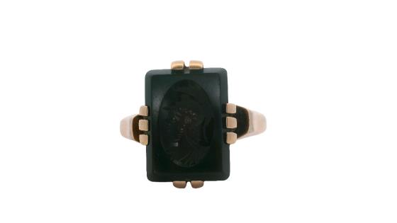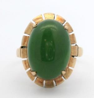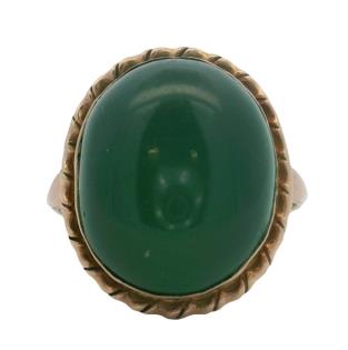 A CABOCHON VINTAGE CHRYSOPRASE 9CT GOLD DRESS RING, SIZE J, 3.6GRAMS