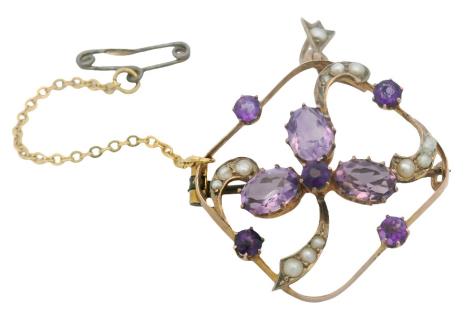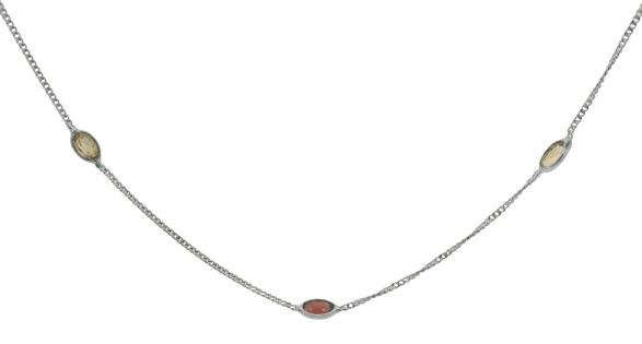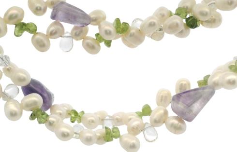 A STRAND OF PEARL, AMETHYST & PERIDOT BEADS