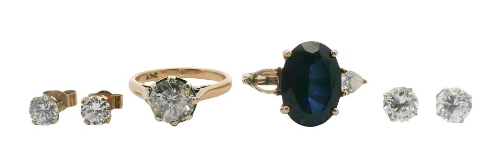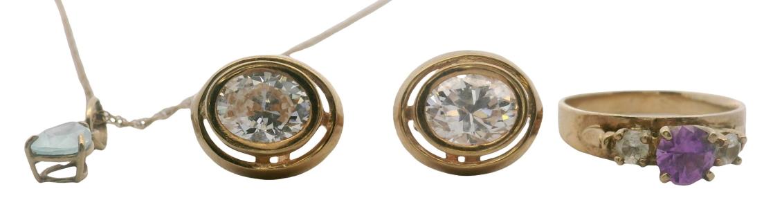 A SELECTION OF 9CT YELLOW GOLD PASTE AND CZ SET JEWELLERY, 7.4GRAMS TOTAL