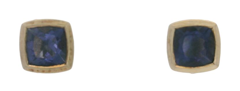 A PAIR OF 9CT WHITE GOLD SOLITAIRE TANZANITE STUDS & MATCHING PENDANT ON CHAIN, 5.7GRAMS TOTAL