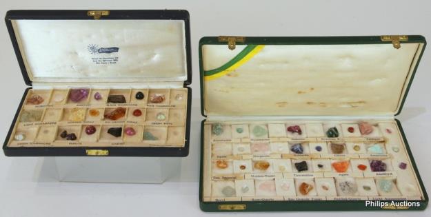 TWO VINTAGE GEMSTONE CASED COMPLETE WITH SPECIMENS