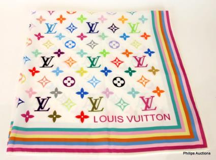 A LOUIS VUITTON SILK SCARF (WHITE / MULTI COLOUR)
