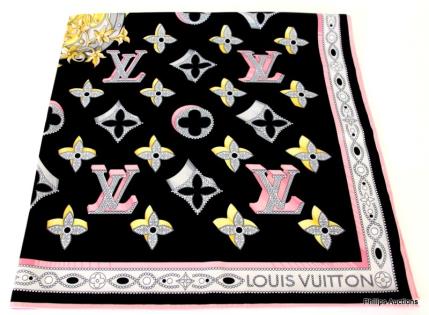 A LOUIS VUITTON SILK SCARF (BLACK)