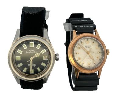 A 9CT VINTAGE GENTS WATCH HEAD ONLY & SPORTS WATCH
