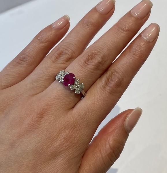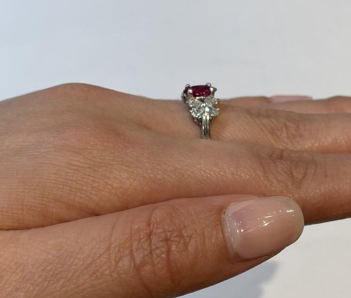 A CENTRAL RUBY WEIGHING 1.21CT & DIAMOND SET PLATINUM RING