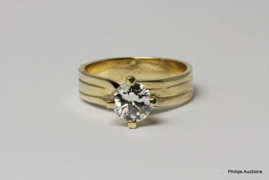 A 9CT YELLOW GOLD SOLITAIRE DIAMOND RING OF APPROXIMATELY 1.00CT