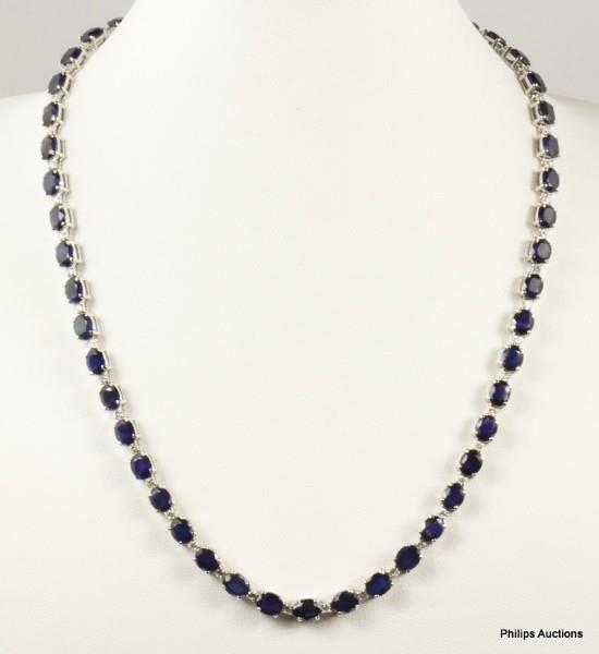AN 18CT WHITE GOLD SAPPHIRE TOTALLING 35.80CT & DIAMOND LINE TOTALLING 1.75CT COLLIER