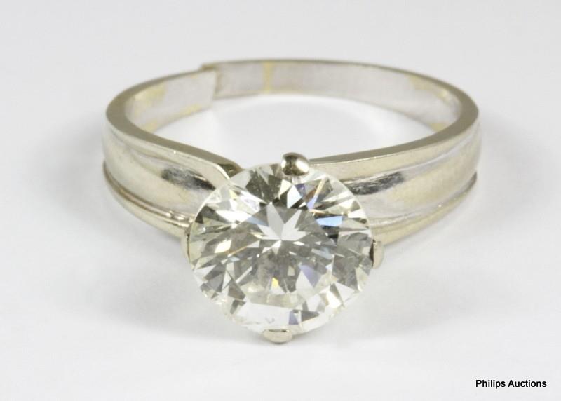 AN 18CT WHITE GOLD & PALLADIUM SOLITAIRE DIAMOND RING OF APPROXIMATELY 3.08CT