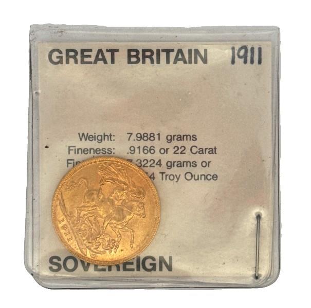A 1911 FULL 22CT YELLOW GOLD SOVEREIGN MINTED GREAT BRITAIN, WEIGHING 7.98GRAMS