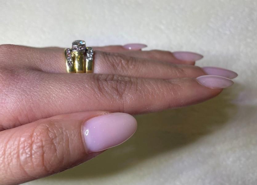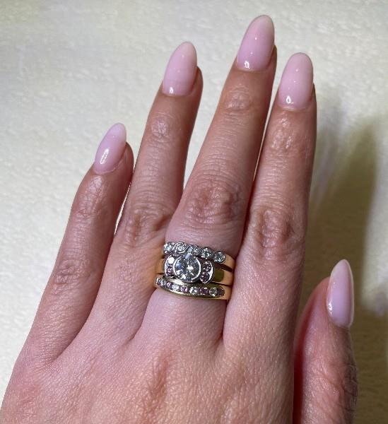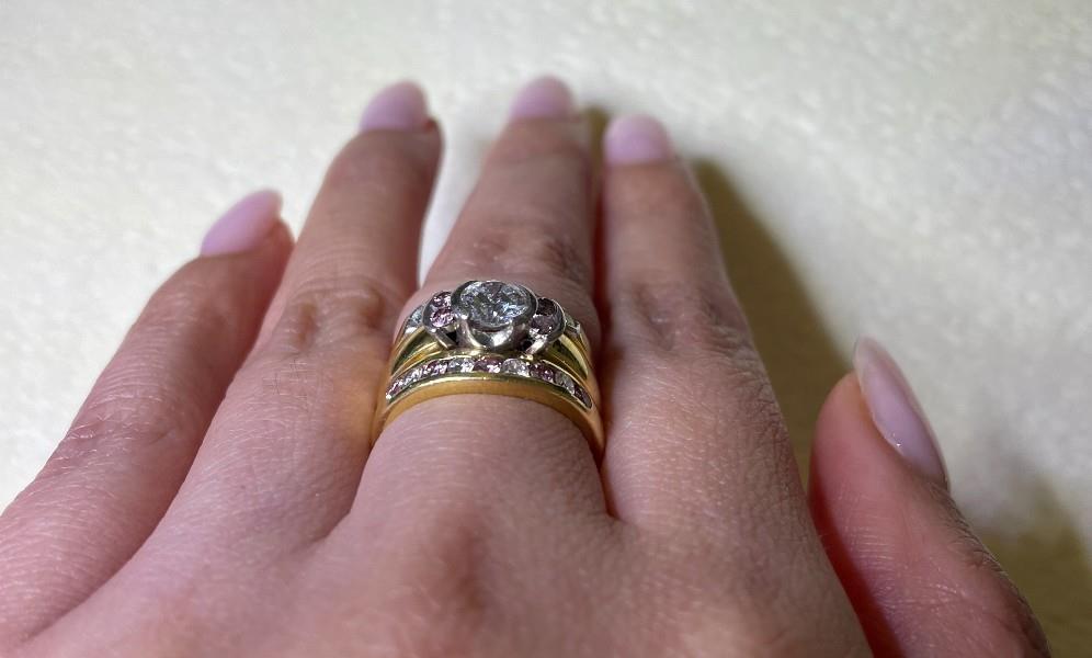 AN 18K YELLOW/WHITE GOLD PINK ARGYLE DIAMOND & WHITE DIAMOND THREE RING SUITE, SIZE: J1/2