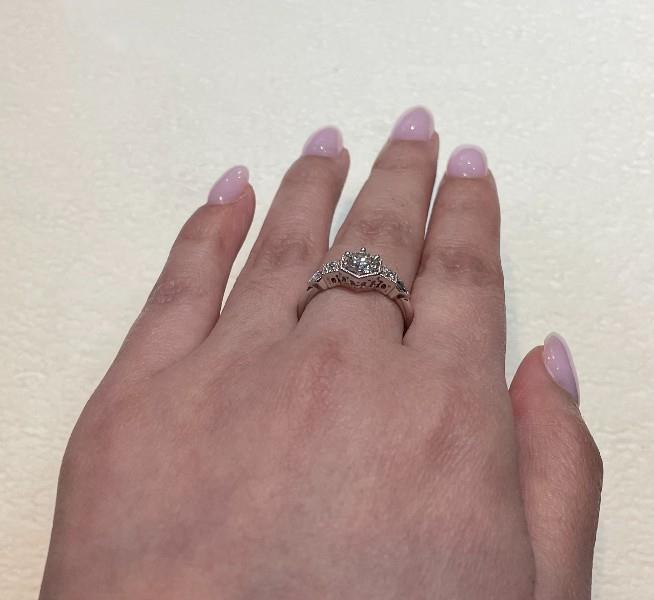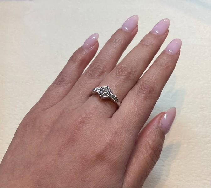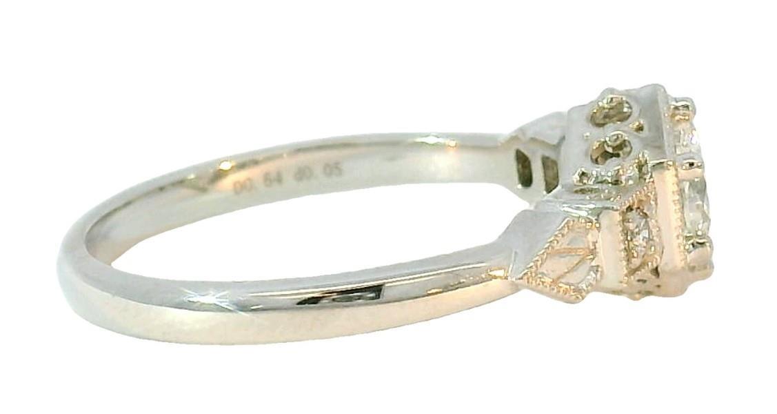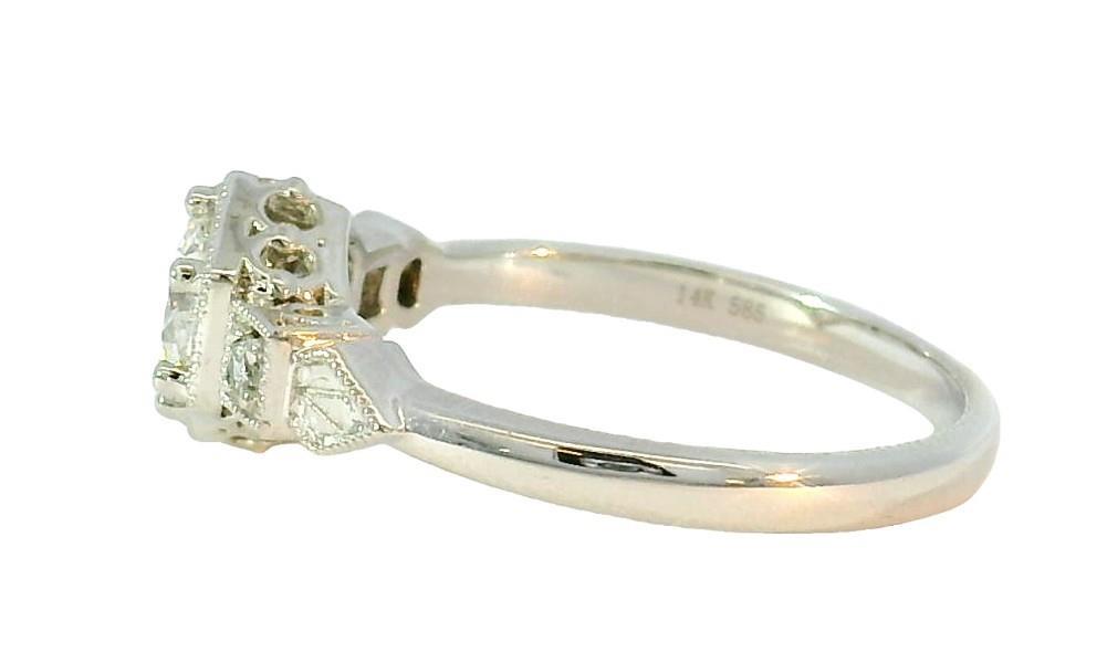 A 14K WHITE GOLD ANTIQUE STYLE DIAMOND SET RING, TOTALLING .69CT, SIZE: O, TOTAL WEIGHT: 2.9GRAMS