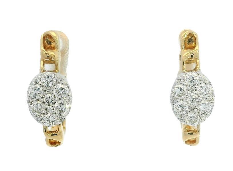 A PAIR OF 18K Y.G SMALL DIAMOND SET OVAL PLAQUE ON HINGED HOOP EARRINGS, WEIGHING 2.8GRAMS