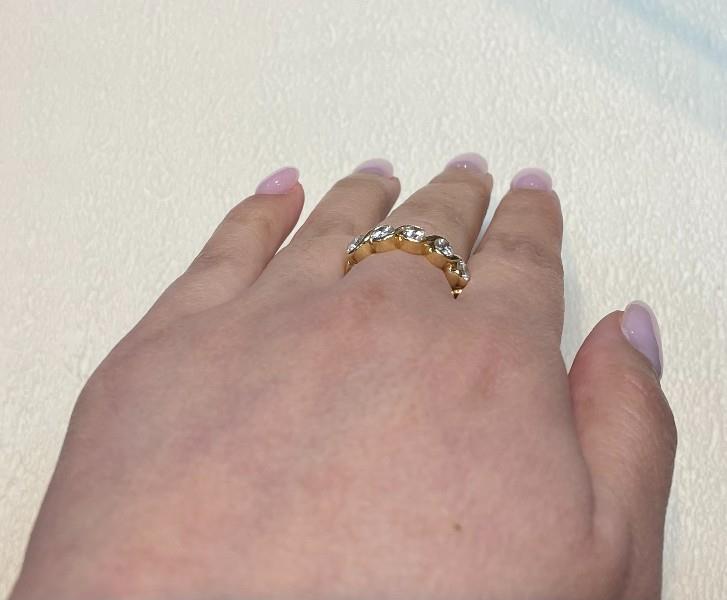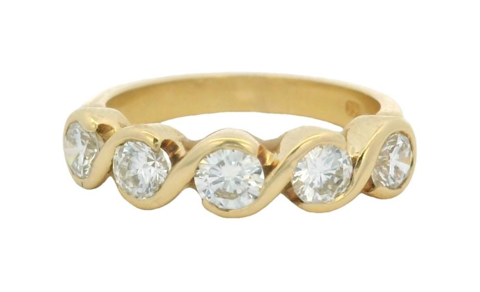 AN 18K Y.G FIVE STONE DIAMOND SET BAND RING WITH WOVEN STYLE, TOTALLING 1.10CT, SIZE: L, T.W.: 4.3GR