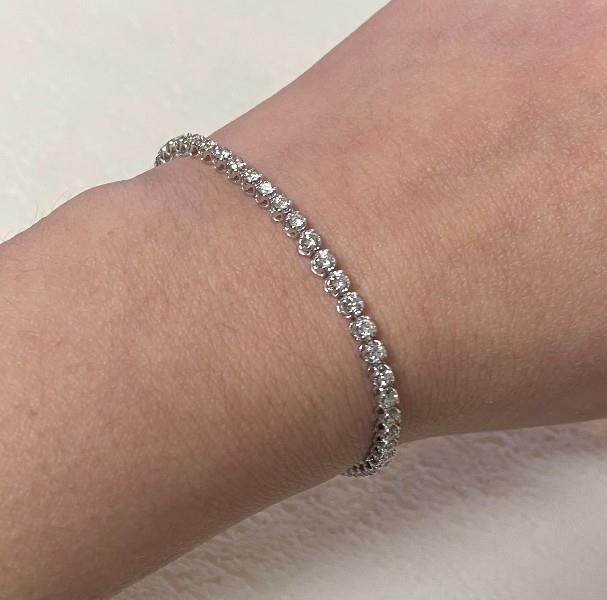 18ct white gold, presented as fifty-six round brilliant cut Diamonds, totalling approximately 1.81ct, illusion set on basket setting, joined through the middle in a semi flexible bracelet, measuring 17cm in length, complete with a concealed groove and tongue clasp, secure with double side latches. Total weight: 6.9g